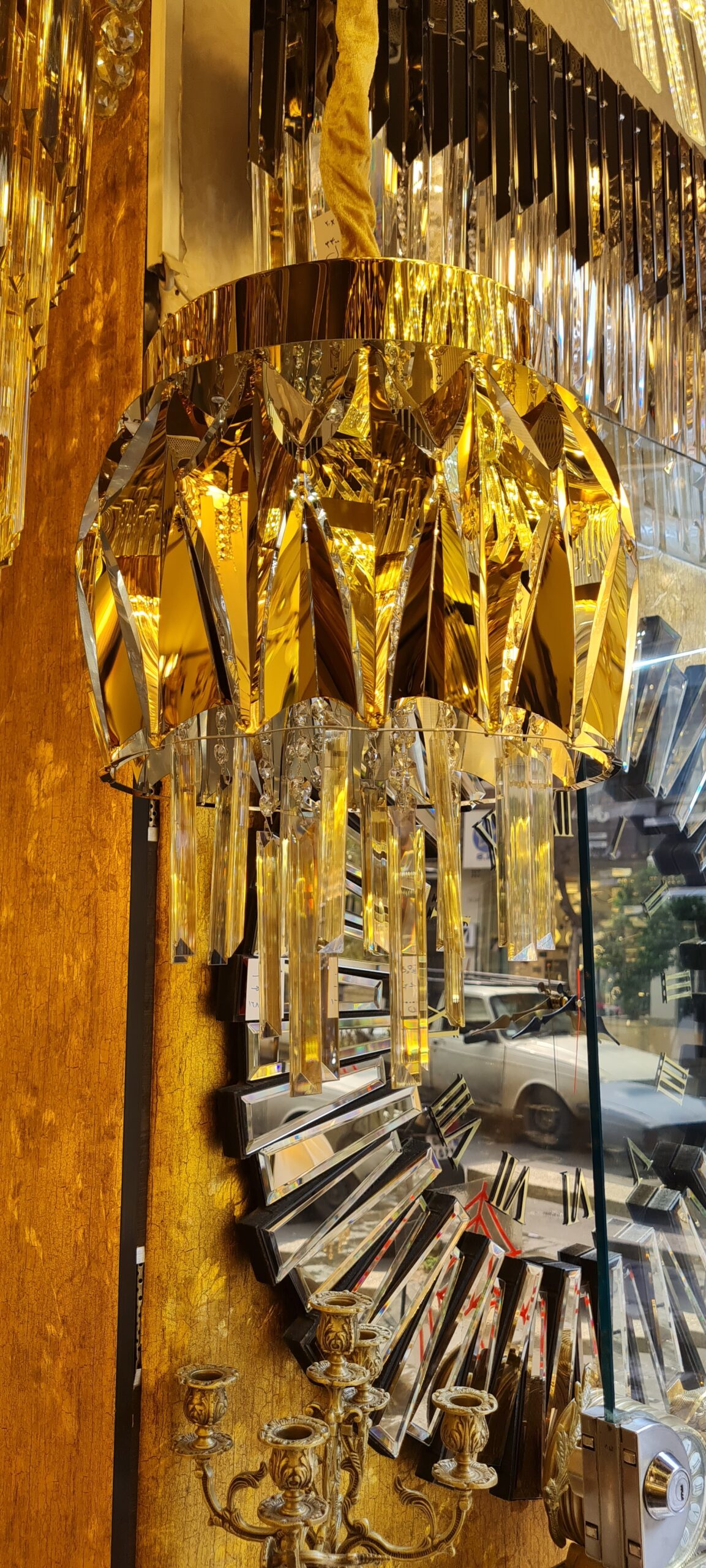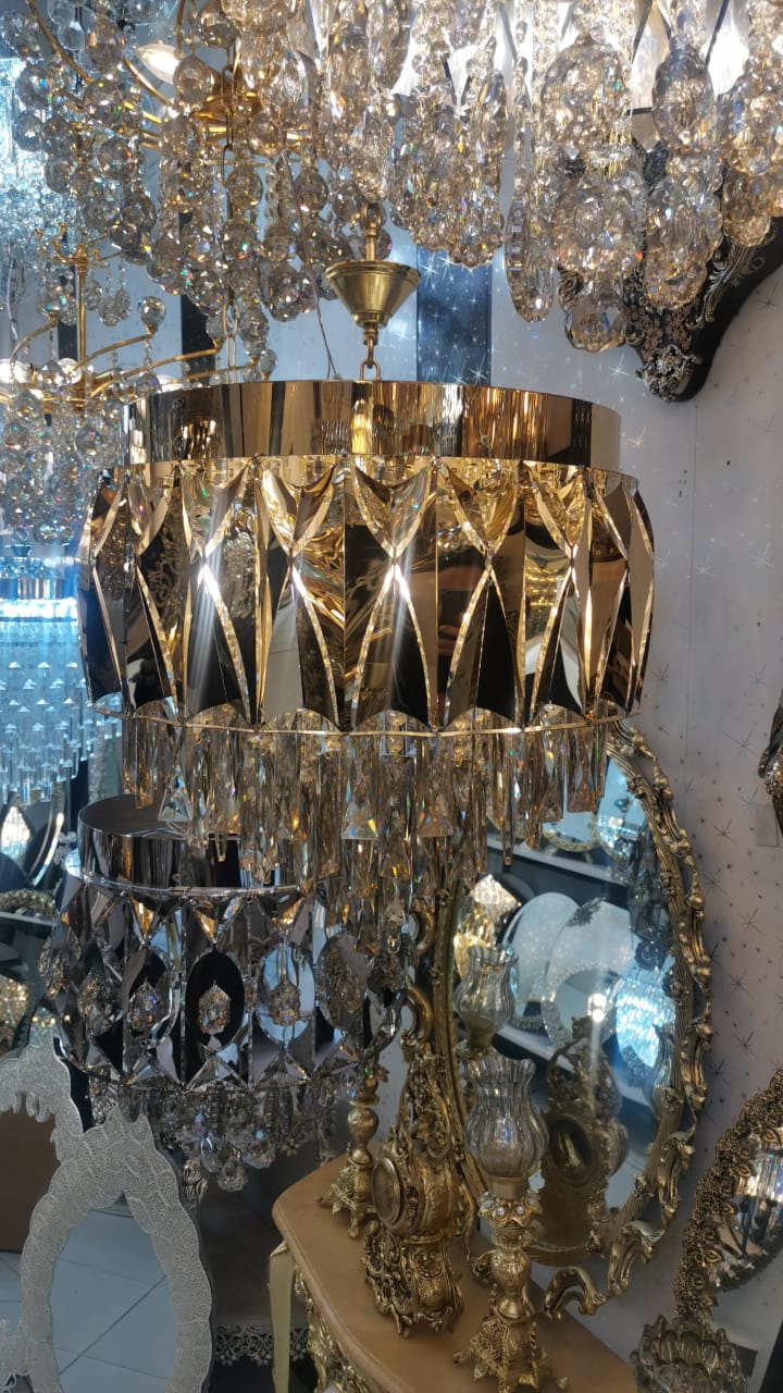 Stunning combination of steel and crystal, use of candle lamp (E14) and SMD separately, adjustable height from the ceiling, can be ordered with different colors and crystals, suitable for living room, bed room.