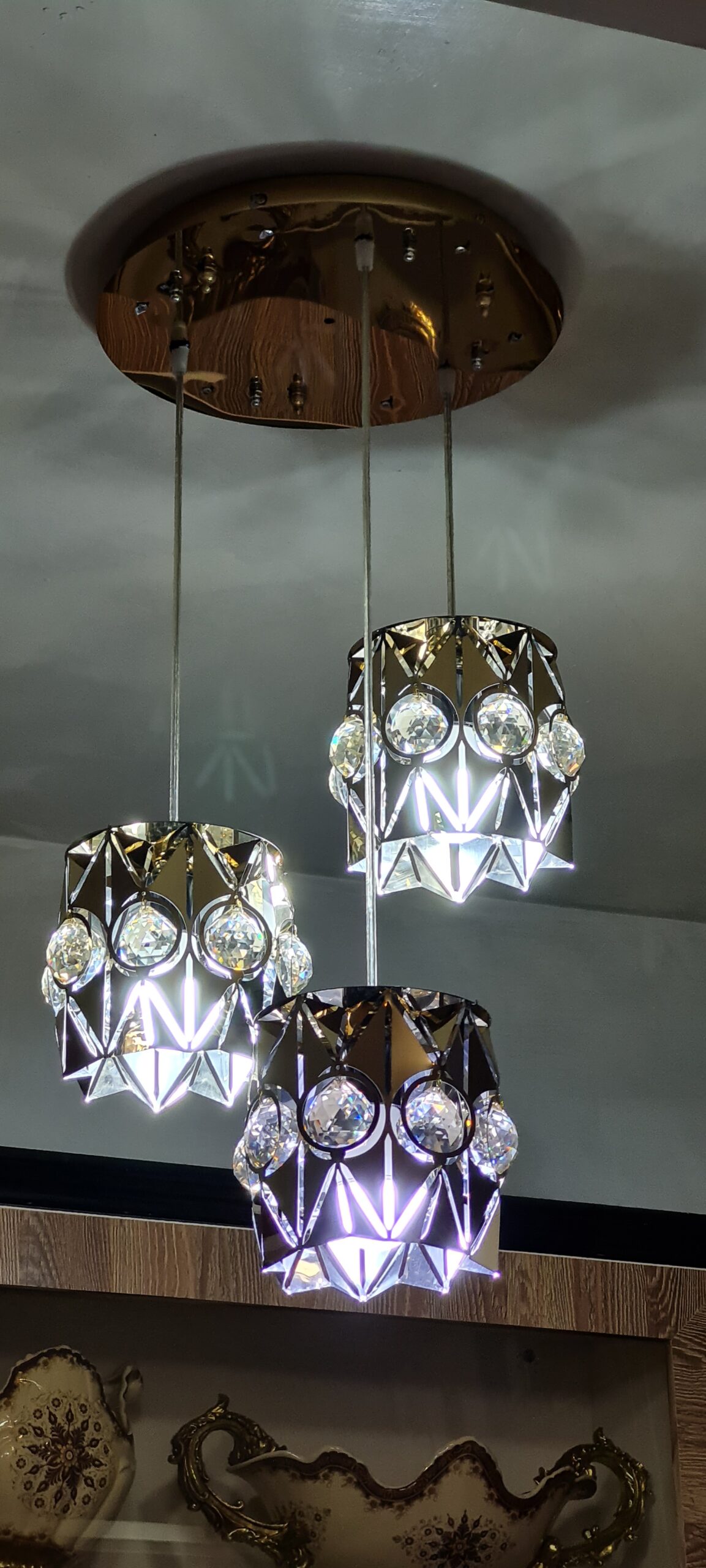 Stunning combination of steel and crystal, use of candle lamp (E14) and SMD separately, adjustable height from the ceiling, can be ordered with different colors and crystals, suitable for living room, bed room.