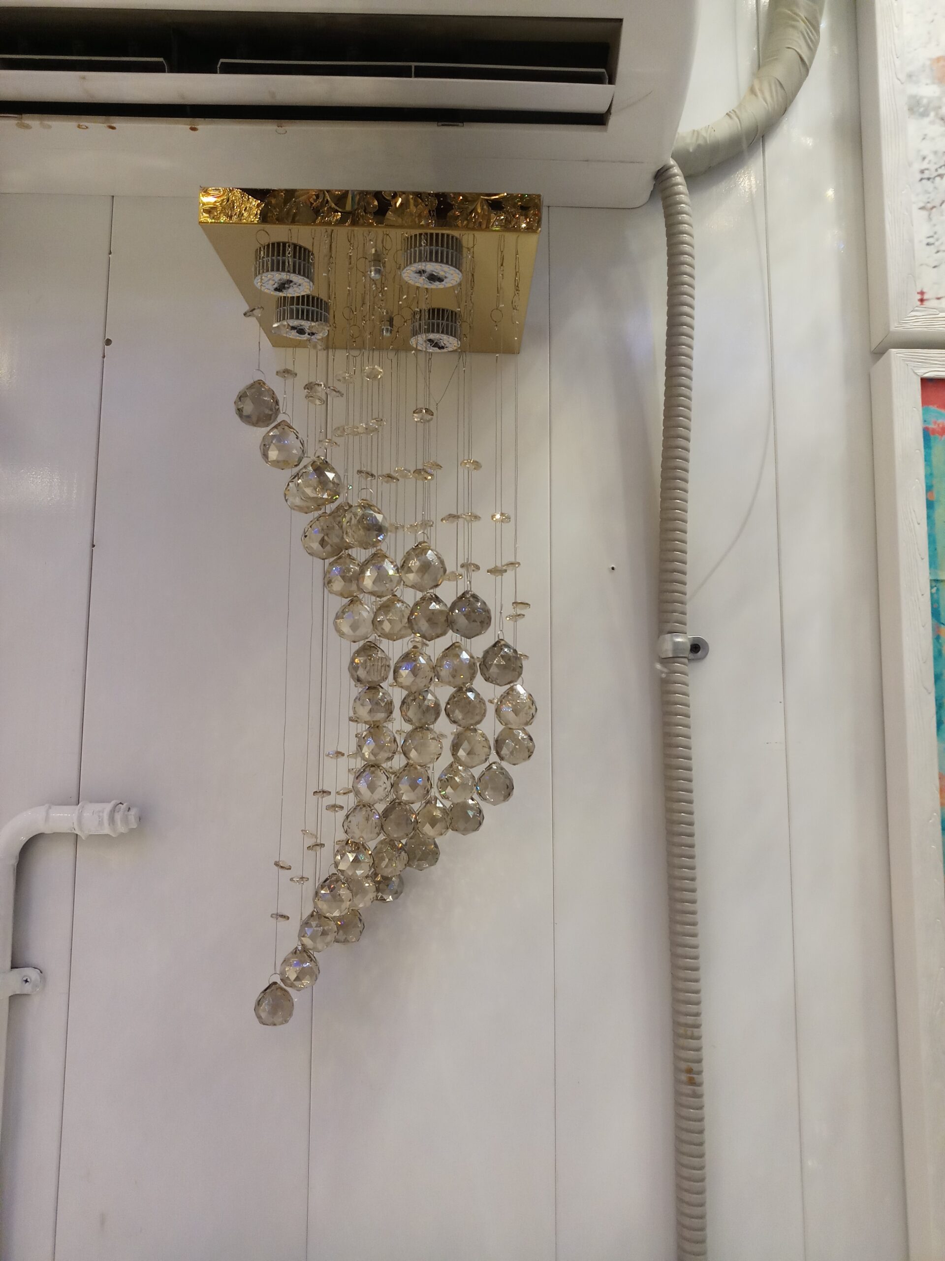 Made of steel plate + unique design of the volume of the chandelier by means of special crystal, use of low consumption halogen, can be ordered in different sizes and colors, suitable for living room, duplex house, hotel and Avan’s suggestion for distinguishing test.
