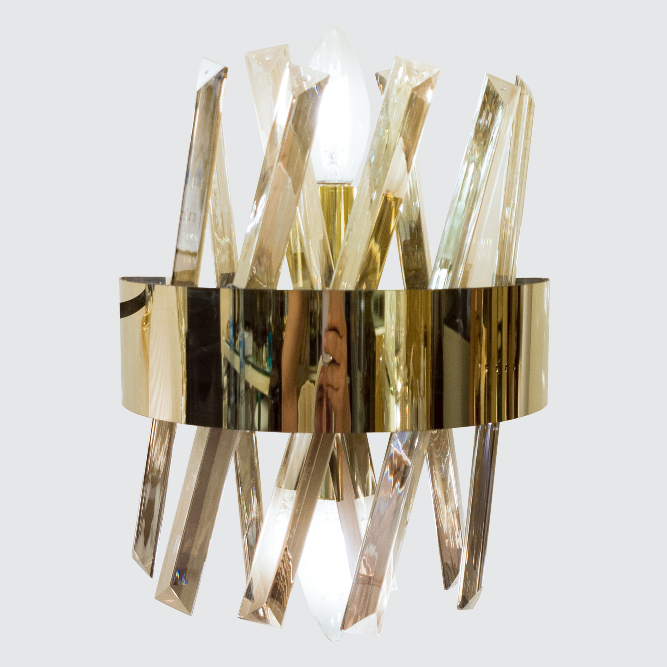 The beautiful combination of plated metal with steel and crystal, the ability to adjust the height from the ceiling, the use of strip SMD lamps, can be ordered in gold, chrome and olive colors with triangular crystal, can be ordered in layers and high height, suitable For living room, bed room, lobby.
